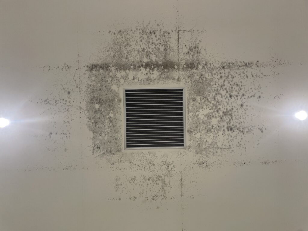 黒いシミが換気口のまわりにドーナツ状に広がり、